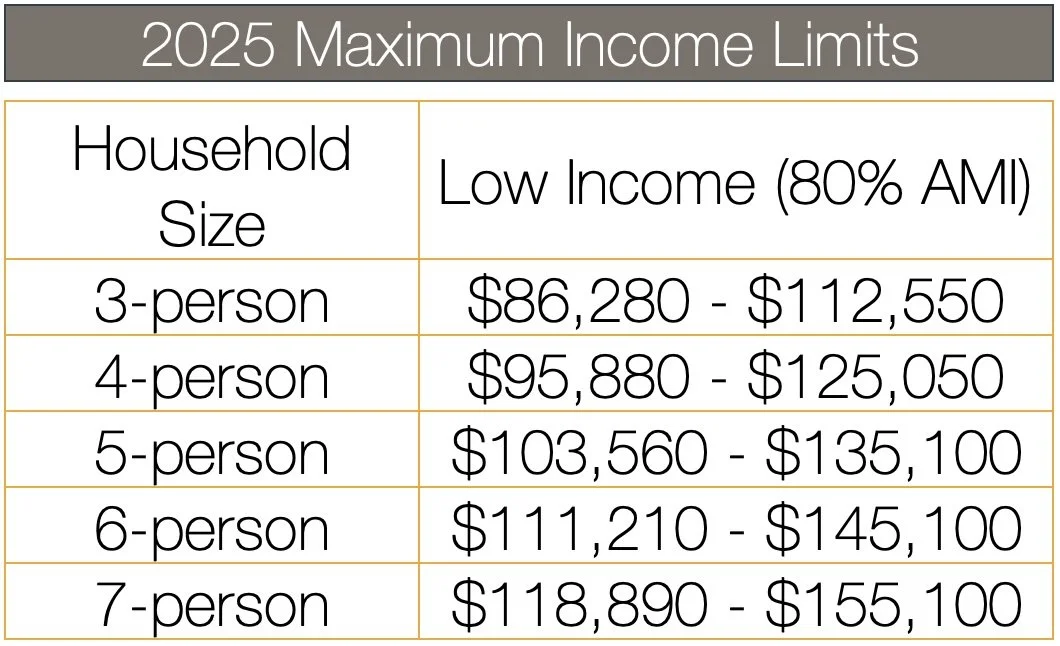 Household income must not exceed the income limits stated below.